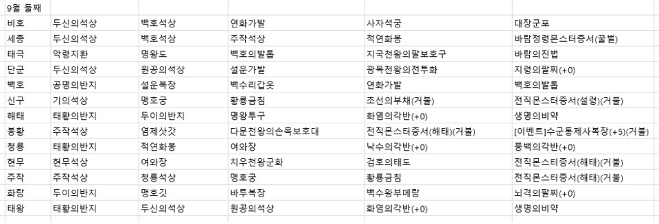 2021년 9월 둘째주 전서버 경매목록