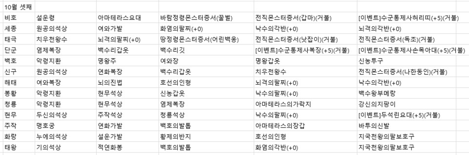 2021년 10월 셋째주 전서버 경매목록