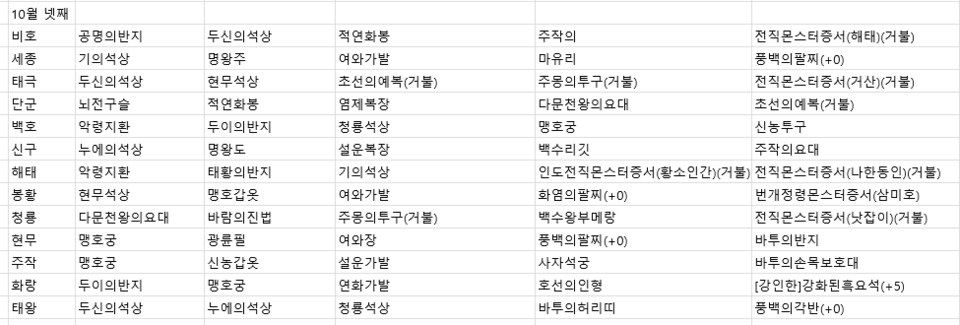 2021년 10월 넷째주 전서버 경매목록