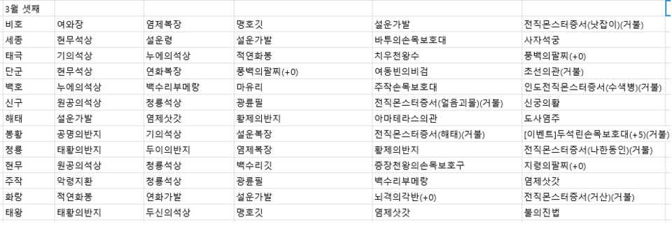 2022년 3월 셋째주 전서버 경매목록