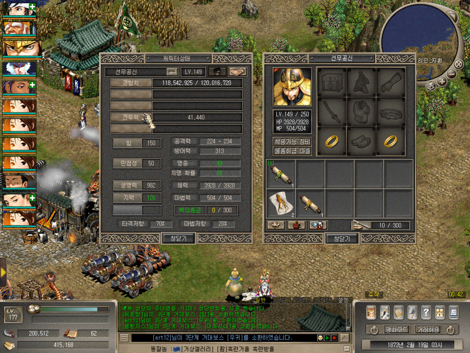 이후 본캐/장수/용병 들의 장비를 풀태셋 정도로 맞춘후
